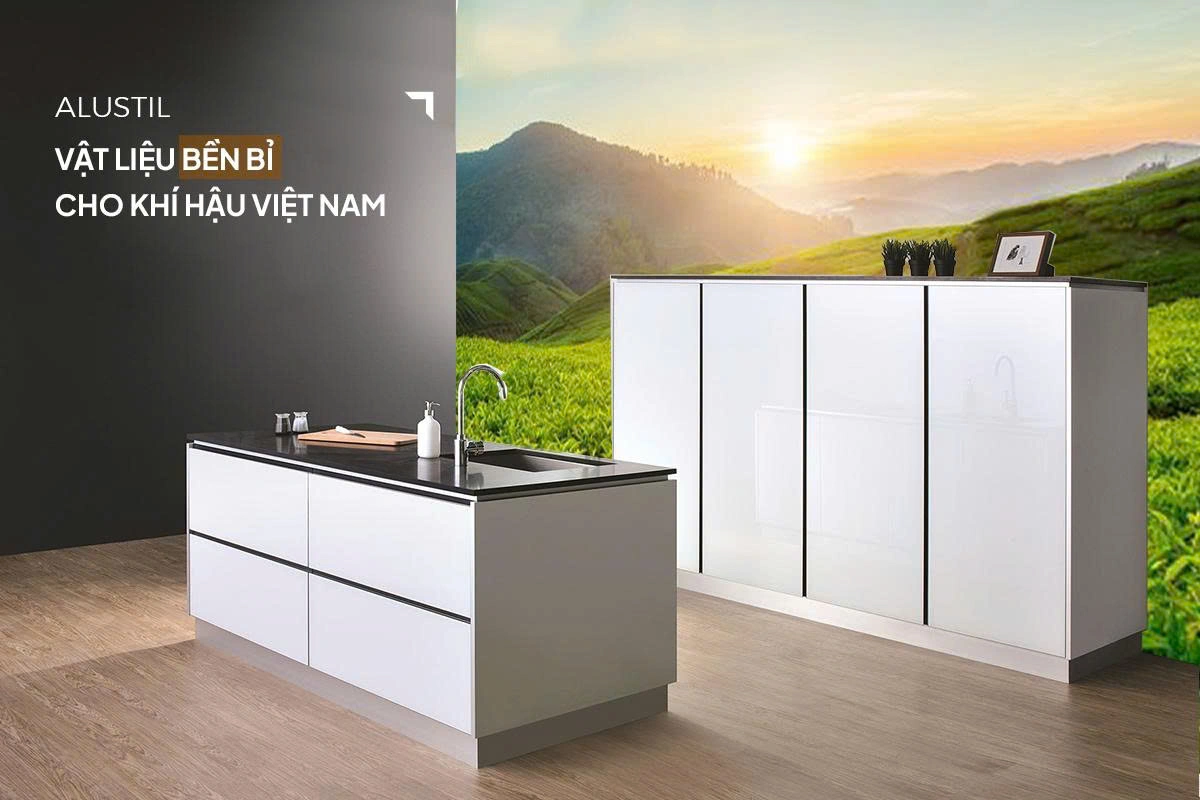 Trong bối cảnh khí hậu Việt Nam ngày càng khắc nghiệt, tủ bếp hợp kim nhôm Alustil chính là bước tiến mới trong thiết kế nội thất bền vững.