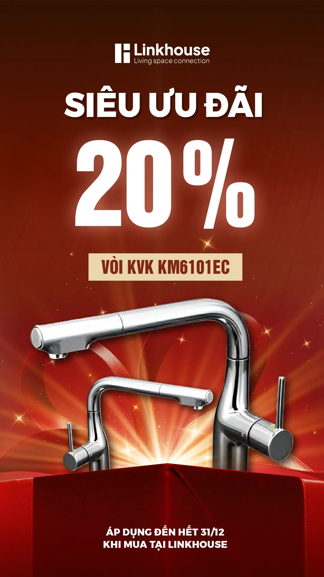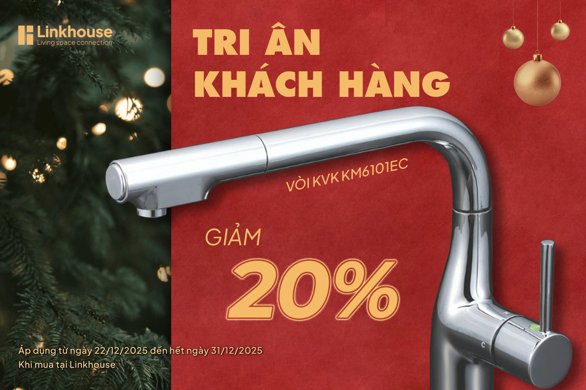 Chương trình ƯU ĐÃI 20% VÒI RỬA KVK là lời tri ân chân thành từ Linkhouse, gửi đến Quý khách hàng đã tin tưởng và đồng hành trong suốt năm 2025.