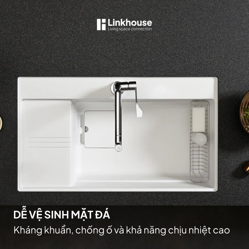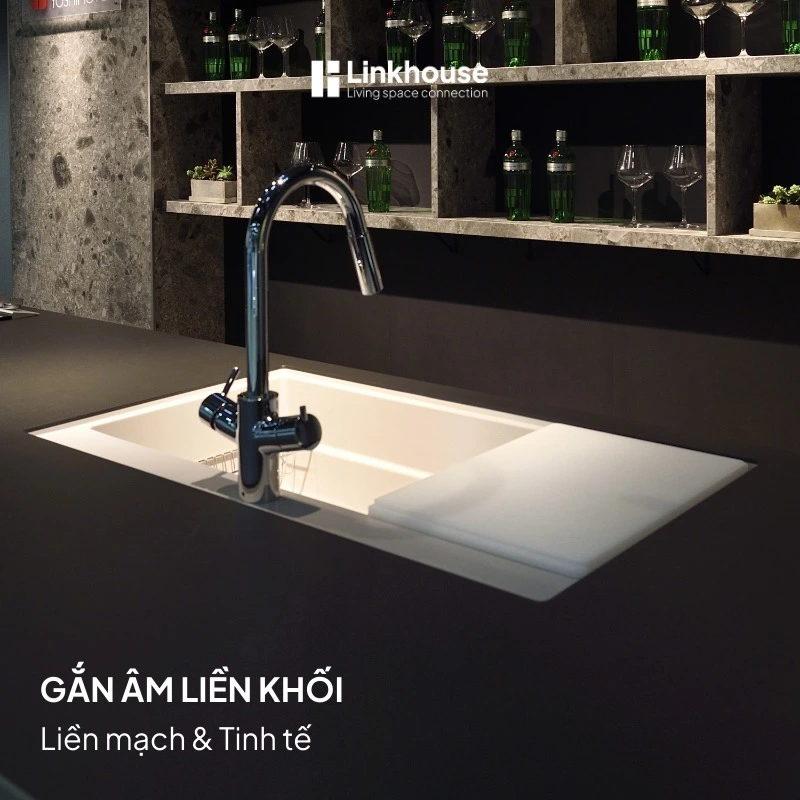 Dễ vệ sinh: Không còn kẽ hở giữa chậu và mặt bếp – nơi thường tích tụ bụi bẩn và nấm mốc. Bạn chỉ cần lau nhẹ là mọi vết bẩn có thể được loại bỏ dễ dàng.