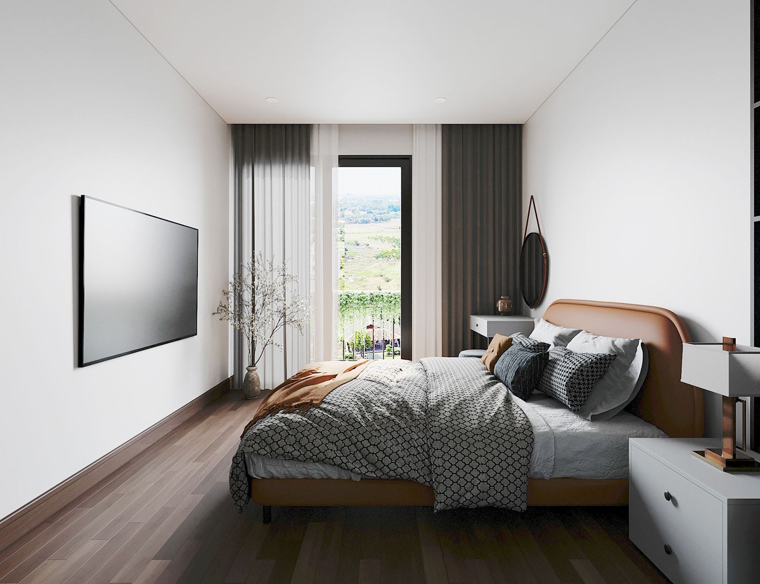 - Căn hộ hai phòng ngủ tại chung cư Hoàng Huy được thiết kế theo phong cách hiện đại chủ yếu sử dụng chất liệu gỗ công nghiệp và da Pu. Những đường nét thẳng phẳng không quá cầu kỹ nhưng vẫn đảm bảo đủ công năng và thẩm mỹ đã được các kiến trúc sư thể hiện một cách thành công nhất.