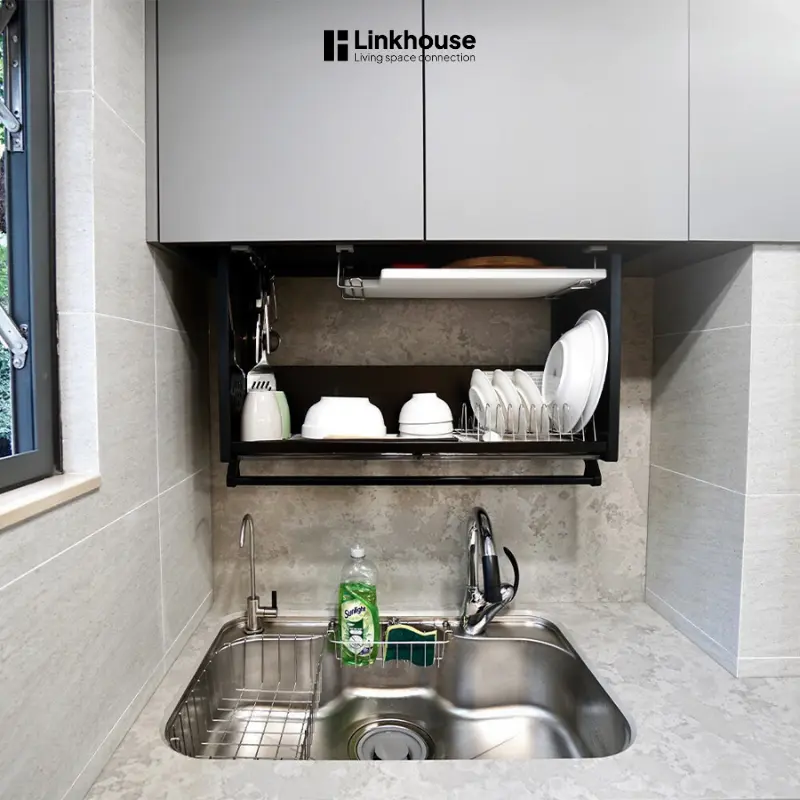 Việc phơi, để ráo bát đĩa sau khi rửa là nhu cầu thiết yếu, nhưng với không gian mặt bàn hạn chế, nhiều gia đình thường phải lựa chọn các giá inox đặt trên bồn rửa hoặc tủ bếp dưới. Những cách làm này dễ gây lộn xộn, chiếm diện tích sử dụng và khiến căn bếp luôn ẩm ướt, thiếu vệ sinh.