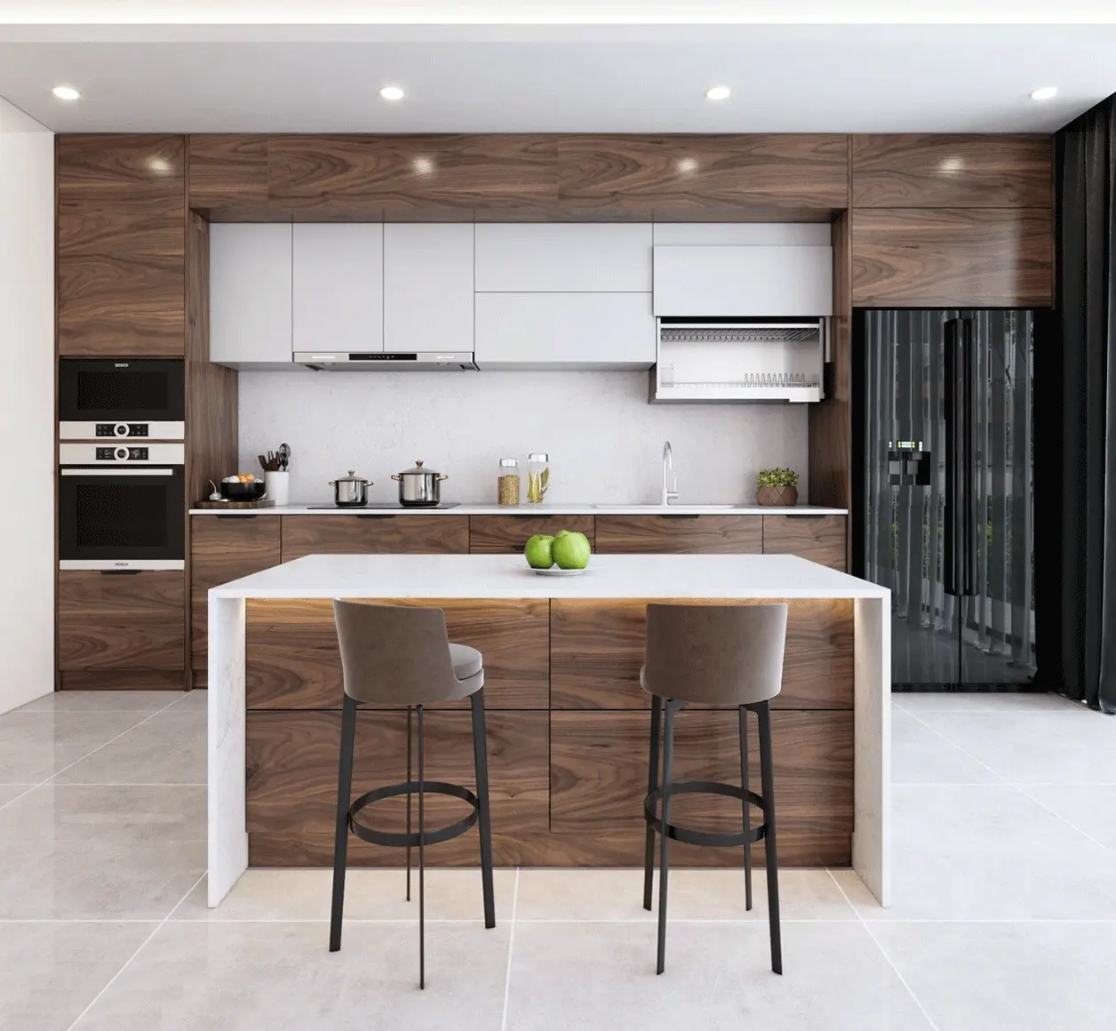 Thiết kế tủ bếp hợp kim chữ L có bàn đảo hiện đại, đẳng cấp: